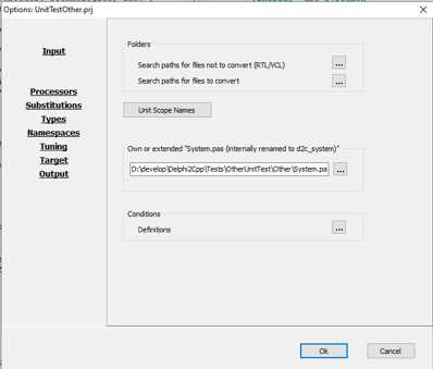 Optionendialog von Delphi2Cpp 2.x: