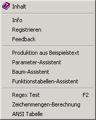 Über das Menü Hilfe ist nicht nur diese Hilfedatei und die Registrierung aufrufbar, sondern auch drei Hilfstools sowie Eine Reihe von Assistenten: